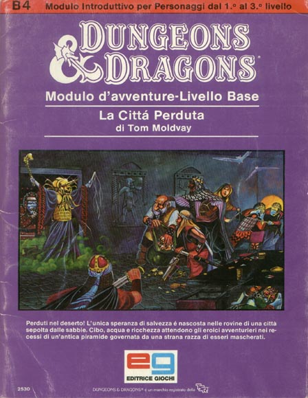 Item Code: #2530 (B4) Title: La Citá Perduta Type: Adventure Author: Tom Moldvay Published: 1982 Format: 32-page book w/tri-fold cover |
