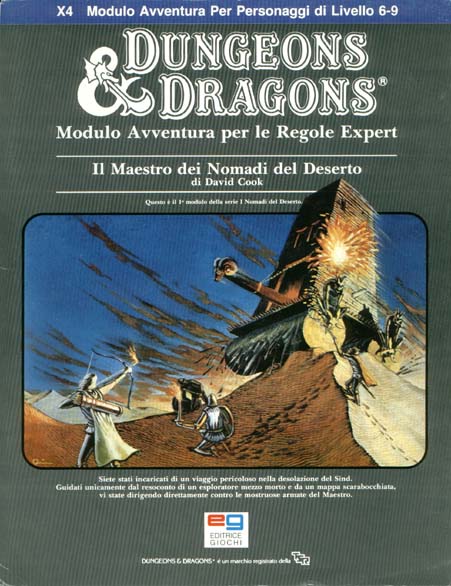 Item Code: (X4) Title: Il Maestro dei Nomadi del Deserto Type: Adventure Author: David Cook Published: 1983 Format: 32-page book w/cover |