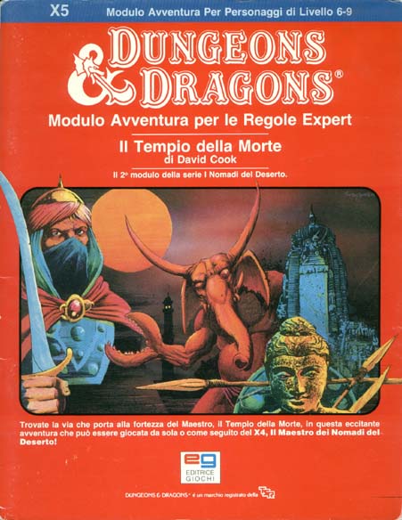 Item Code: (X5) Title: Il Tempio della Morte Type: Adventure Author: David Cook Published: 1983 Format: 32-page book w/cover |