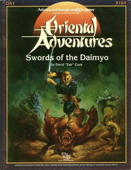 Item Code: #9164 (OA1) Title: Swords of the Daimyo Type: Adventure Author: David "Zeb" Cook Published: 1986 Format: 2 32-page books w/tri-fold cover, fold-out map |