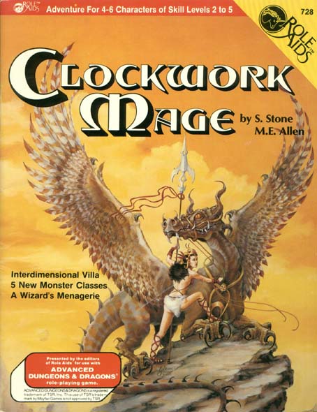 Item Code: #728 Title: Clockwork Mage Type: Adventure For: 4-6 characters, levels 2-5 Author: Susan Stone and M.E. Allen Published: 1985 Format: 32-page book, 2-panel cardstock map |