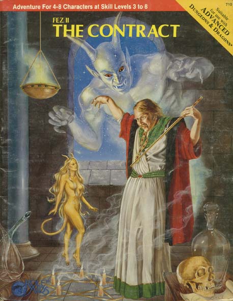 Item Code: #710 Title: Fez II: The Contract Type: Adventure For: 4-8 characters, levels 3-8 Author: James Robert and Len Bland Published: 1983 Format: 40-page book |