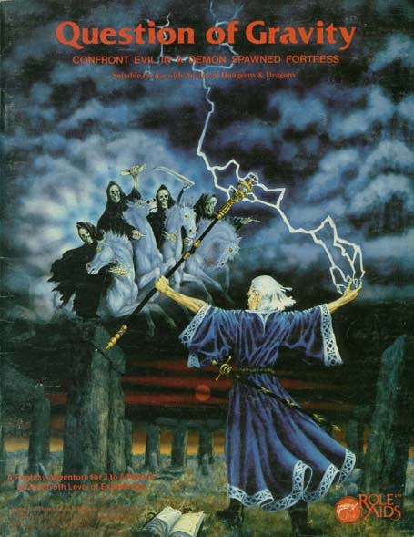 Item Code: #705 Title: Question of Gravity Type: Adventure For: 3-8 characters, level 2-5 Author: Jerome Mooney Published: 1982 Format: 24-page book |