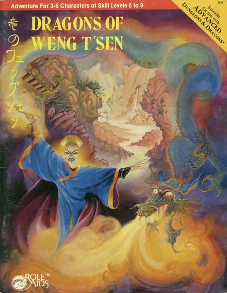 Item Code: #709 Title: Dragons of Weng T'sen Type: Adventure For: 3-6 characters, levels 6-9 Author: Delbert Carr Jr. and Cheron Published: 1983 Format: 32-page book |