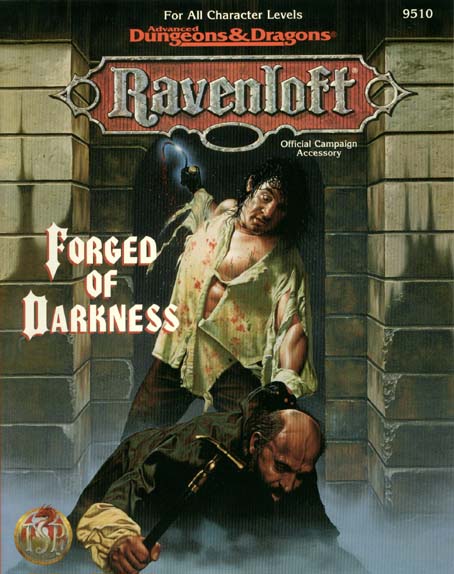 Absolute Power. In the bewitched domain of Tepest, under the pale amber light of a full moon, a wandering band of adventurers comes across the severed hand of a hanged man. Far beneath Darkon's dread Castle Avernus, a mysterious Black Vault is sealed, locking away an assortment of magical arms and armor until such time as the cause of evil demands their service. Across the dread domains of Ravenloft, sinister craftsmen created magical items of unequaled power - and absolute evil. Absolute Corruption. Forged of Darkness presents players and Dungeon Masters with a collection of magical items, each of which carries the distinctive taint of the Demiplane of Dread. This 64-page omnibus of diabolic devices is certain to add an element of the macabre to any RAVENLOFT campaign |