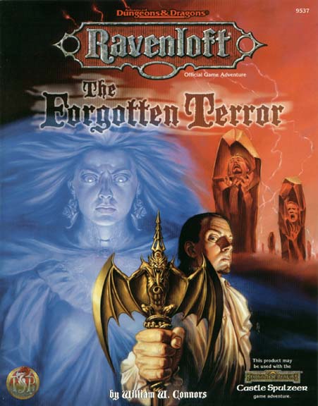 of your attacker. The adventure begins. Their spirits trapped by a cursed magical weapon, the heroes find themselves imprisoned on the surreal domain of Aggarath. Here, they must explore the mind of Chardath Spulzeer, the isane lord of the realm. Somewhere in his shattered dreams and tormented memories lie secrets that may enable the adventurers to escape. The Forgotten Terror is a new adventure for the RAVENLOFT campaign setting. It can be played as a stand-alone scenario or as a sequel to events depicted in the FORGOTTEN REALMS adventure Castle Spulzeer. The unique nature of this domain and scenario makes The Forgotten Terror easy for the Dungeon Master to run without forcing players through a linear plot. Alternate endings allow the DM to link this adventure to Ravenloft, the Realms, or any other campaign world. For 4 to 6 characters of levels 10-12. |