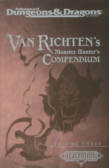 Item Code: #11613 Title: Van Richten's Monster Hunter's Compendium Volume Three Type: Accessory Published: 2000 Format: 288-page perfect-bound book |