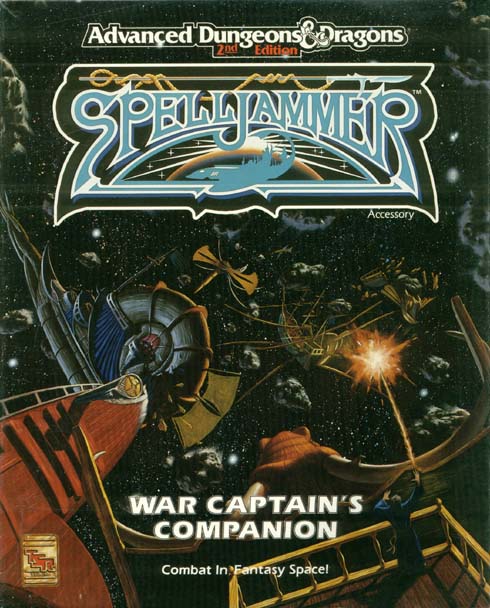 The worlds of fantasy space are legion. Not all are friendly. The spider-like Neogi slavers, the cold and calculating Mind Flayers, the savage Scro, and others all build great ships of war to catch the magical currents of space. Now YOU can face the perils of deadly combat in the depths of the void. This game accessory gives you the chance to storm enemy ships or brave a barrage of wizard spells that could tear your ship apart. This latest boxed set, the War Captain's Companion (sequel to the earlier SPELLJAMMER boxed set, Adventures in Space) contains the following: Ship-to-Ship game: Tactical ship rules and two 22" x 31" mapsheets with an extra-large hex grid. Three complete books: Over 190 pages of vital information designed to expand your SPELLJAMMER campaign setting. Additional game cards: 6 full-sized 8½" x 11" cards: player aid cards, game markers, and three new color ship cards. Colorful playing pieces: 6 sheets of full-color 3-D ship pieces, over 30 ships in all. War Captain's Guide 96 pages New role-playing rules, including new character skills and magical items. New section allows creative players to design their own ships. War fleet and shipyard bases for our major campaign worlds! Ship Recognition Manual 64 pages Updated and expanded information on all existing ship types. Each ship in this book is accompanied by a detailed line illustration. Introduces over a dozen ship types for the first time anywhere! Combat Among the Stars 32 pages Easy-to-learn ship-to-ship rules that will give hours of enjoyment. Includes ramming, boarding actions, magic use, and much more. Optional rules feature 3-D movement and advanced weapons and equipment! |