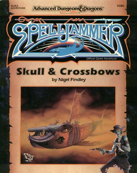 Item Code: #9286 (SJA2) Title: Skull & Crossbows Type: Adventure Author: Nigel Findley Published: 1990 Format: 64-page book w/tri-fold cover, single-sided fold-out map (various ship layouts) |